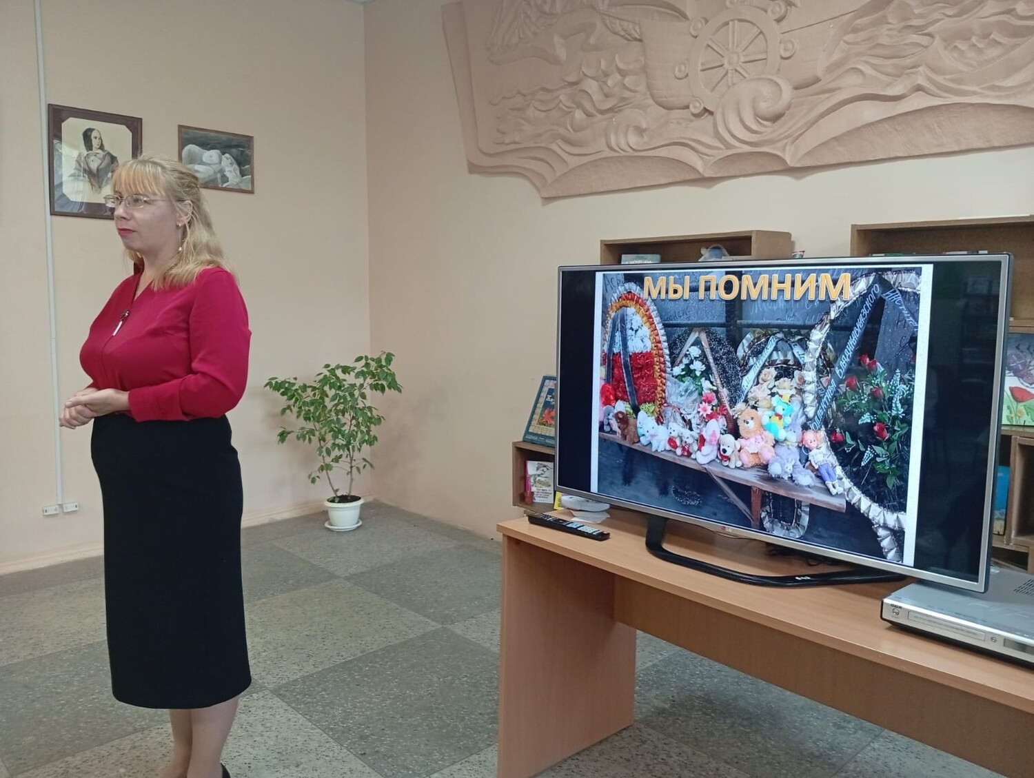 Сегодня, в День солидарности в борьбе с терроризмом, учащиеся 8"В" класса вместе с классным руководителем Ольгой Анатольевной Котовой посетили библиотеку-филиал № 5 МУК "Централизованная система детских библиотек" г. Волгограда.