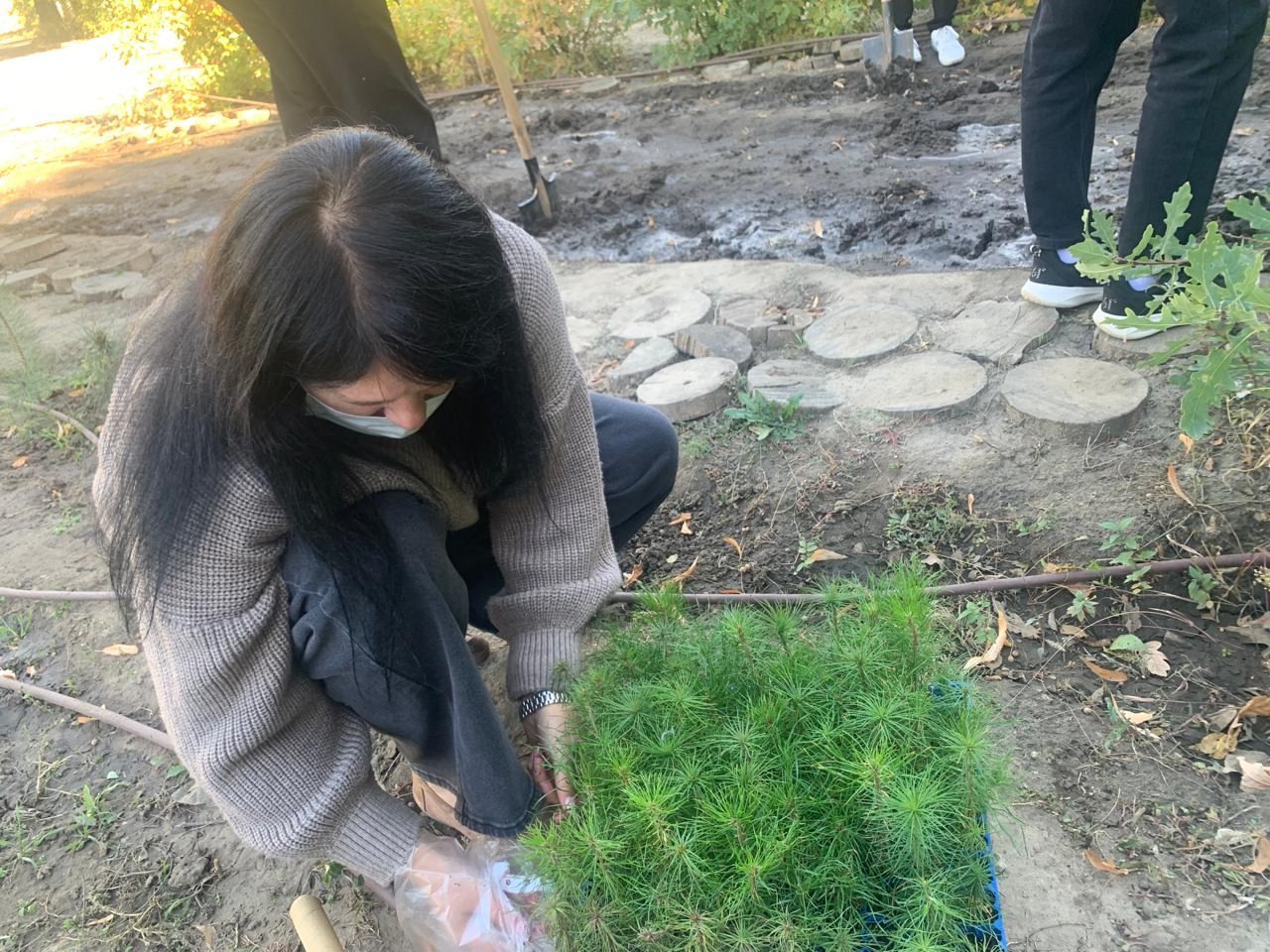 В детском саду №325 маленькие воспитанники трудились ответственно и очень увлеченно. С помощью воспитателей и родителей высадили часть сеянцев сосны, переданных им во время митинга.